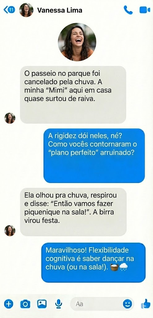 💡 A lição: A vida nem sempre é perfeita, mas pode ser divertida se formos flexíveis.